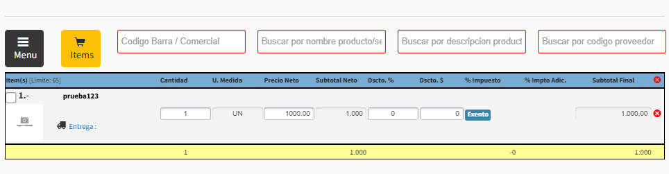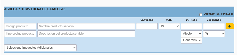 Se pueden agregar items fuera de catalogo, debe ingresar los datos en el recuadro especifico.