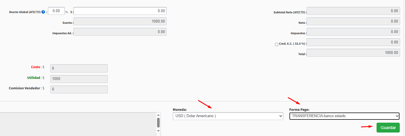 - Referencia : Esta referencia es un texto libre, idealmente para diferenciar cotizaciones emitidas a un mismo cliente.