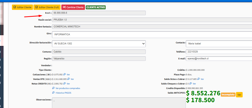 Si el cliente ya existe, lo puede buscar por rut o por razon social o por nombre de fantasia.